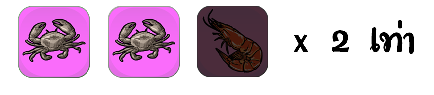 การแทงลูกเต๋าลูกเดียว ออก 2 ลูก คือ ผลลูกเต๋า 3 ลูก ออกถูก 2 ตัวที่แทงไว้ จะได้ ×2 เท่า ของชิปที่เดิมพัน
