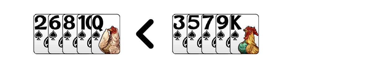 เช่น 2♠ 6♠ 8♠ 10♠ Q♠ < 3♠ 5♠ 7♠ 9♠ K♠
