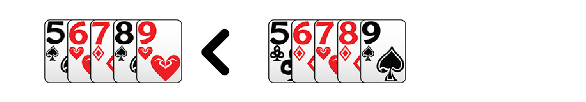 เช่น 5♠ 6♥ 7♦ 8♠ 9 < 5♣ 6♦ 7♥ 8♦ 9♠