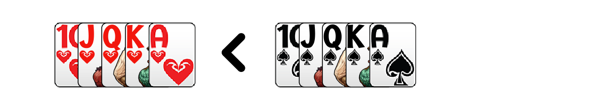 เช่น 10♥ J♥ Q♥ K♥ A♥ < 10♠ J♠ Q♠ K♠ A♠
