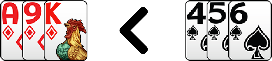 เช่น 9♦ K♦ A♦ < 4♠ 5♠ 7♠