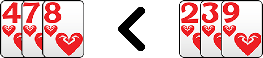เช่น 4♠ 7♠ 8♠ < 2♠ 3♠ 9♠