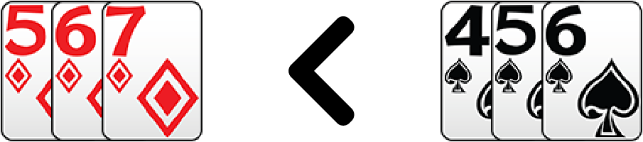 เช่น 5♦ 6♦ 7♦ < 5♠ 6♠ 7♠