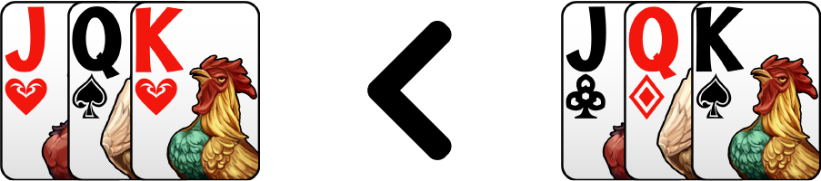 เช่น J♥ Q♠ K♥ < J♣ Q♦ K♠