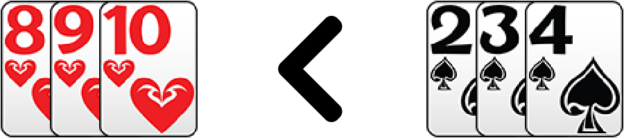เช่น 8♥ 9♥ 10♥ < 2♠ 3♠ 4♠