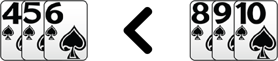 เช่น 4♠ 5♠ 6♠ < 8♠ 9♠ 10♠